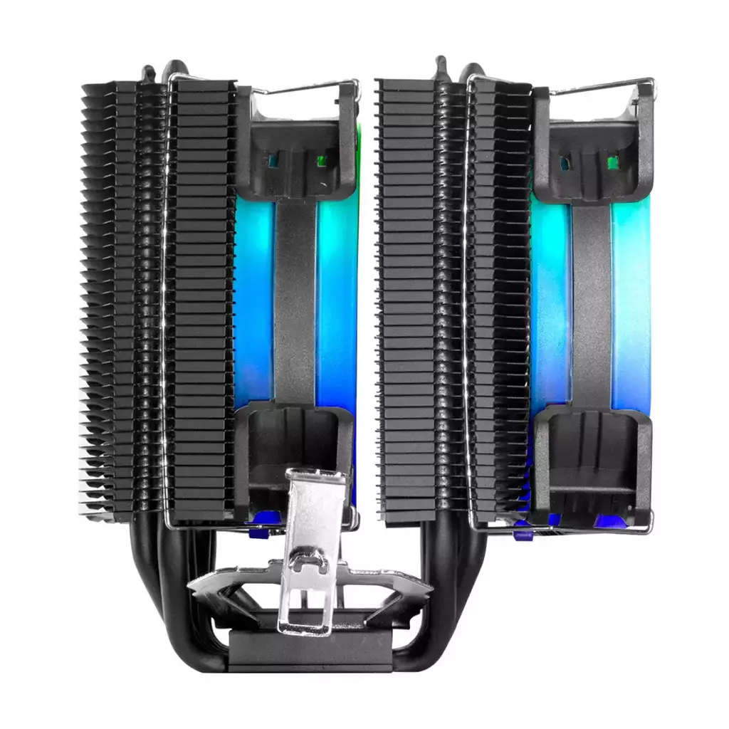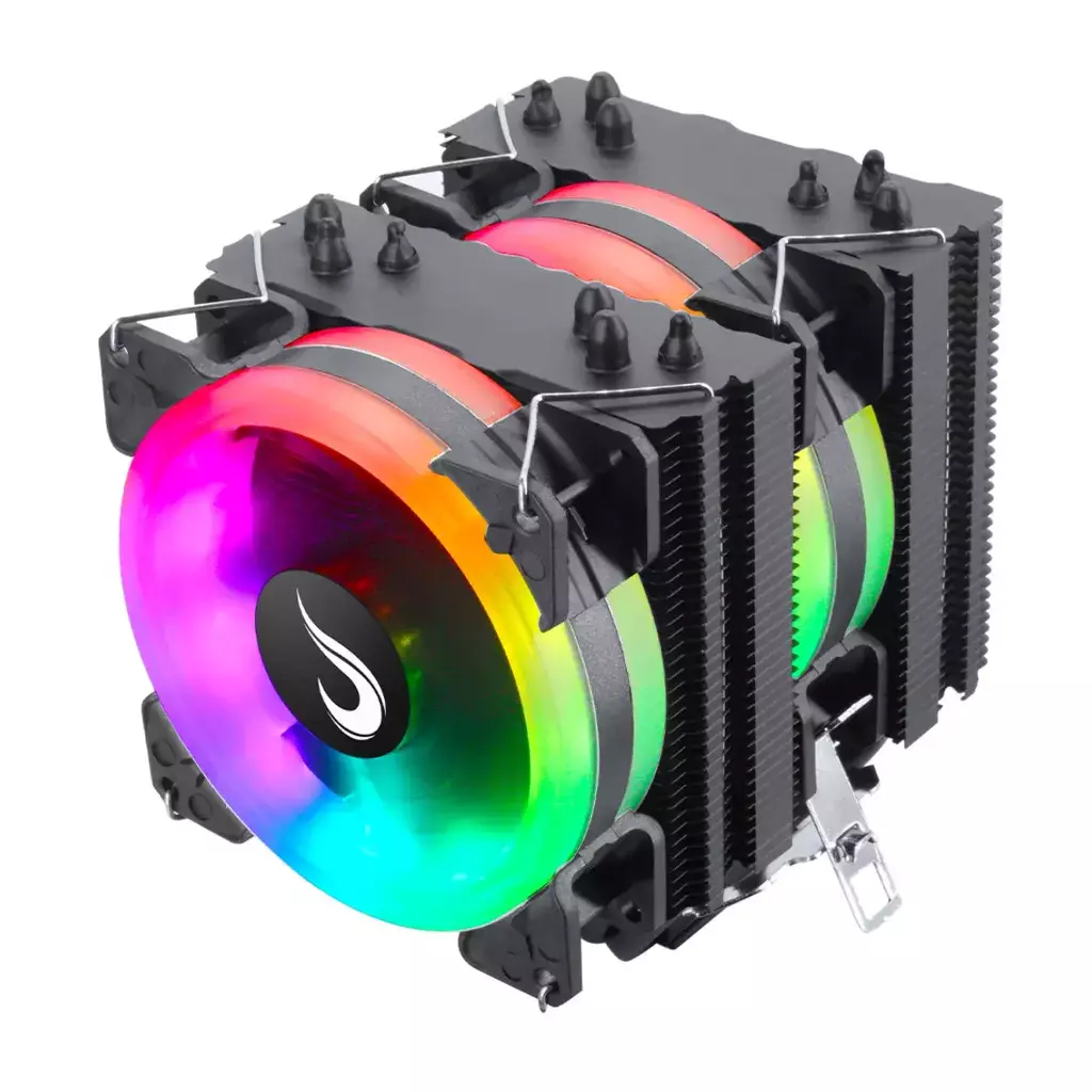 O Air Cooler G800 ARGB Black oferece uma combinação poderosa de eficiência de refrigeração e iluminação impressionante. Cada fan (2x) tem um fluxo de ar de 55 CFM e opera a uma velocidade de 800-2100 RPM, garantindo o resfriamento eficiente do seu sistema. Equipado com LEDs ARGB de alto brilho, este kit transformará o seu setup em um espetáculo de luzes. O rolamento de fluido assegura um funcionamento silencioso, com um nível de ruído de apenas 18 dBA.