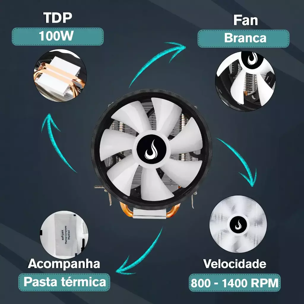 O Air Cooler Gamer Rise Mode Z4 White é a solução ideal para quem busca um resfriamento eficiente e silencioso para o seu PC gamer, com design clean e moderno na cor branca. Desenvolvido para suportar processadores com TDP de até 100W, este cooler combina performance e durabilidade para manter seu setup sempre na temperatura ideal durante suas sessões de jogo.