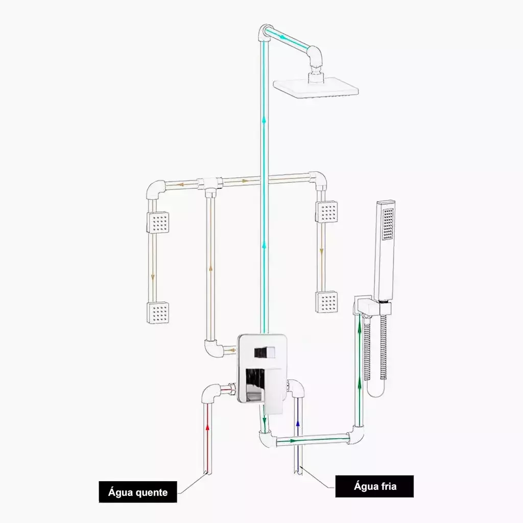 - Saída de Água: 3 (Chuveiro, Chuveirinho de Mão, Pulverizadores)