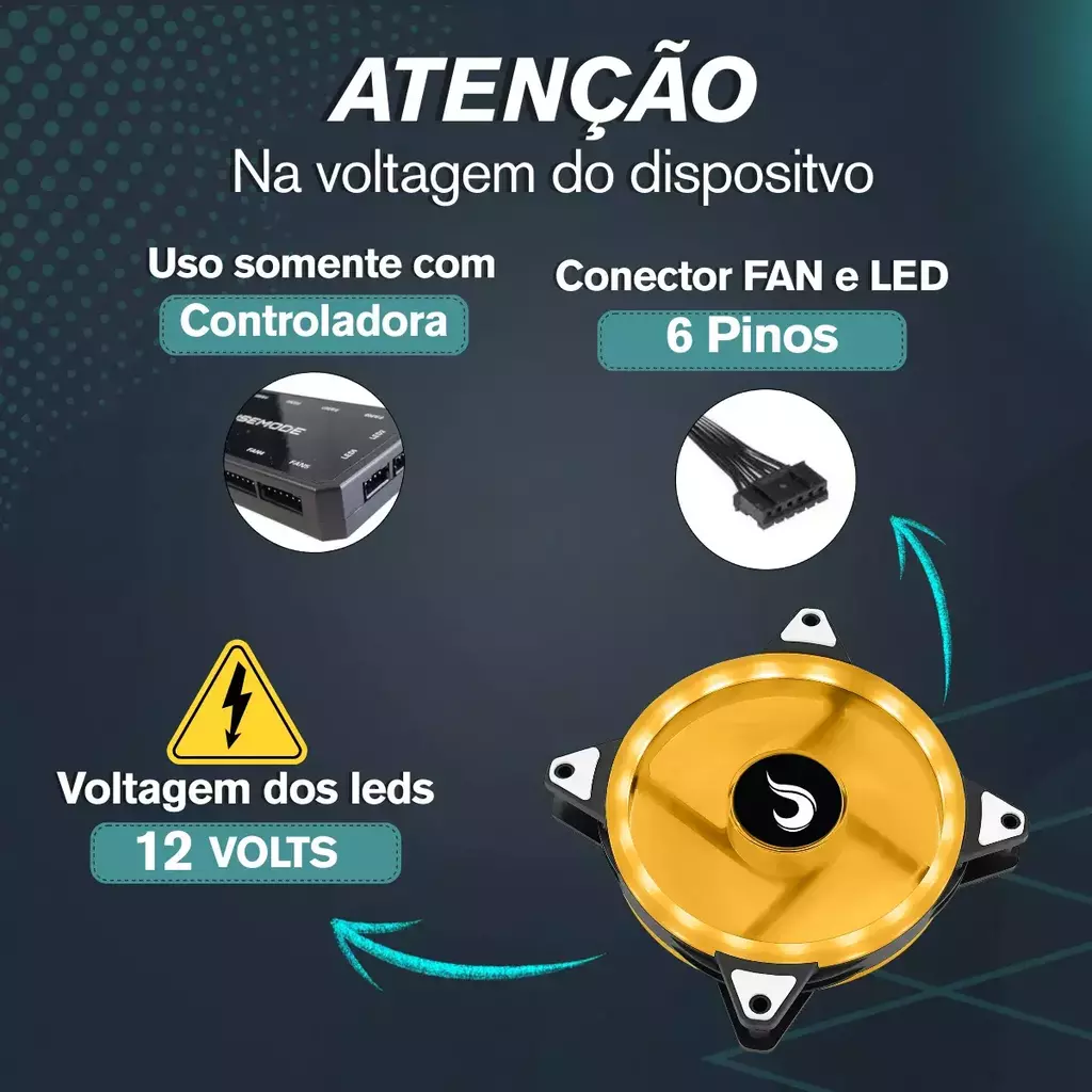 - Conexão do Fan: 6 pin controladora 12v