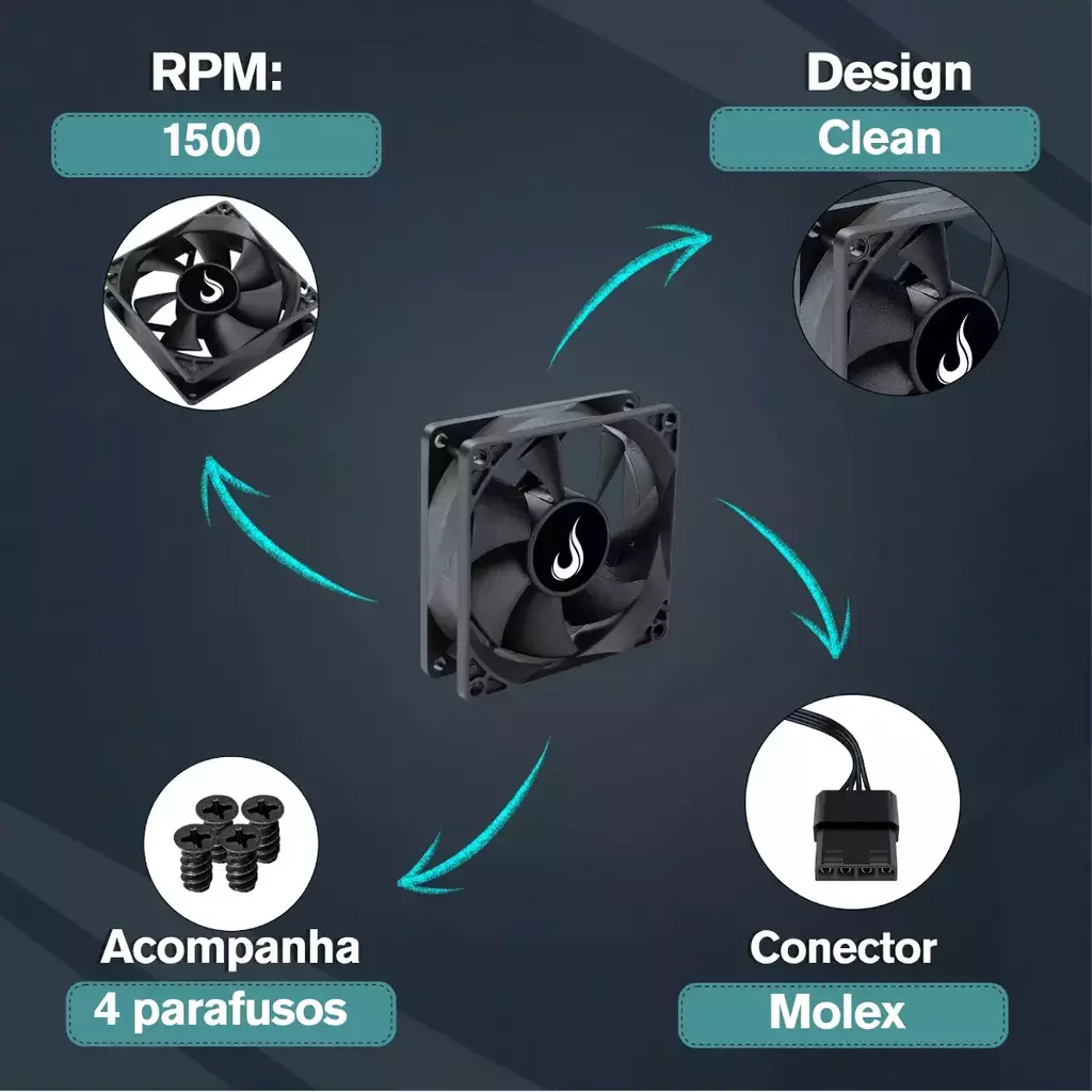 O Fan Rise Mode Black é mais um produto da Rise, desenvolvido para otimizar o fluxo de ar em seu gabinete. Entregando um fluxo de ar de 50 CFM com um nível sonoro de apenas 28 dBA, você garante o resfriamento ideal sem ruídos perturbadores. Com uma velocidade de 1500 RPM e conexão via 3 pin ou Molex, é um produto fácil de instalar e com desempenho garantido.