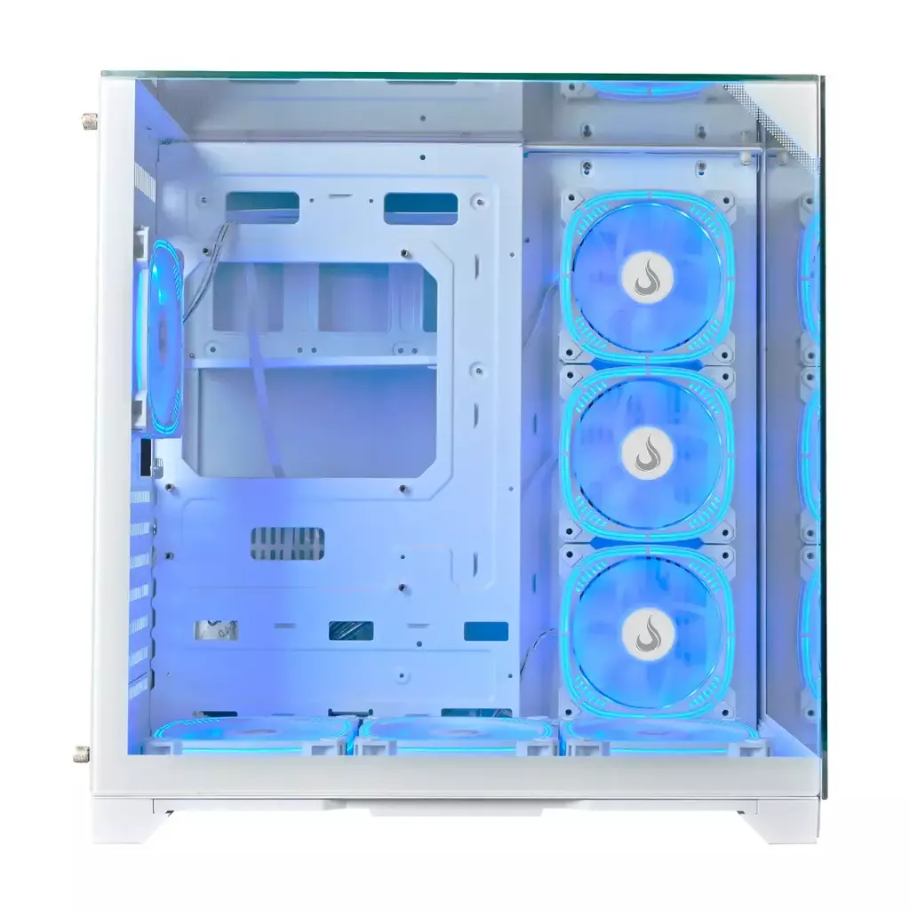 O Gabinete Rise Mode Galaxy Full Glass White, um gabinete gamer sofisticado projetado para os entusiastas do PC. Este gabinete vem sem fans, permitindo que você personalize o resfriamento de acordo com suas necessidades. O design predominante em branco é complementado com painéis de vidro temperado na lateral e na frente, proporcionando uma visão clara dos seus componentes. Com suporte para várias placas-mãe, várias opções de conectividade no painel e amplo espaço para expansão, este gabinete é perfeito para construir a máquina dos seus sonhos.