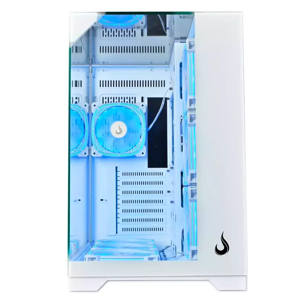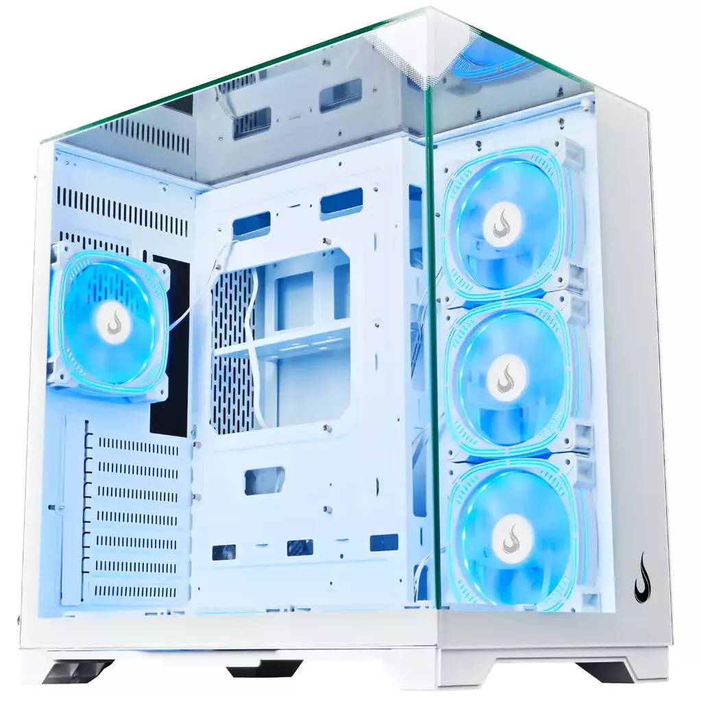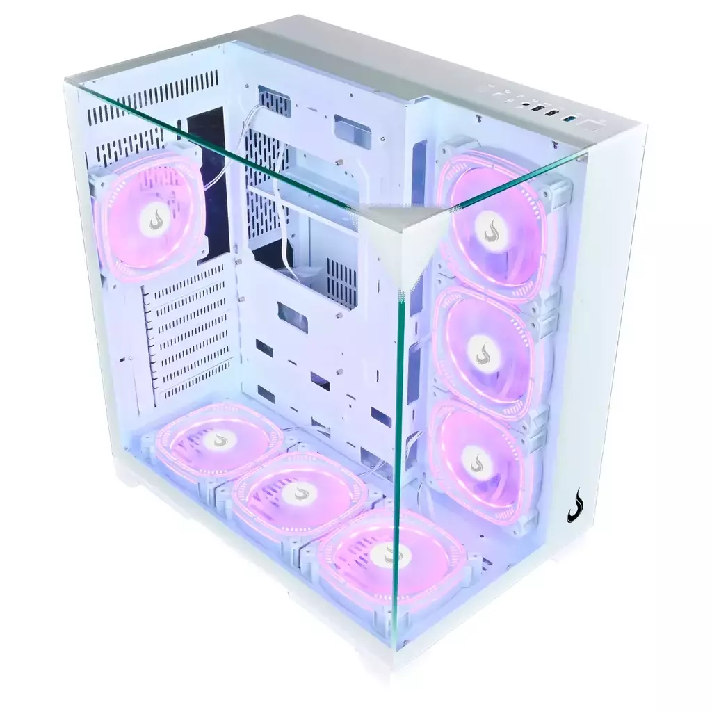 O Gabinete Rise Mode Galaxy Full Glass White, um gabinete gamer sofisticado projetado para os entusiastas do PC. Este gabinete vem sem fans, permitindo que você personalize o resfriamento de acordo com suas necessidades. O design predominante em branco é complementado com painéis de vidro temperado na lateral e na frente, proporcionando uma visão clara dos seus componentes. Com suporte para várias placas-mãe, várias opções de conectividade no painel e amplo espaço para expansão, este gabinete é perfeito para construir a máquina dos seus sonhos.