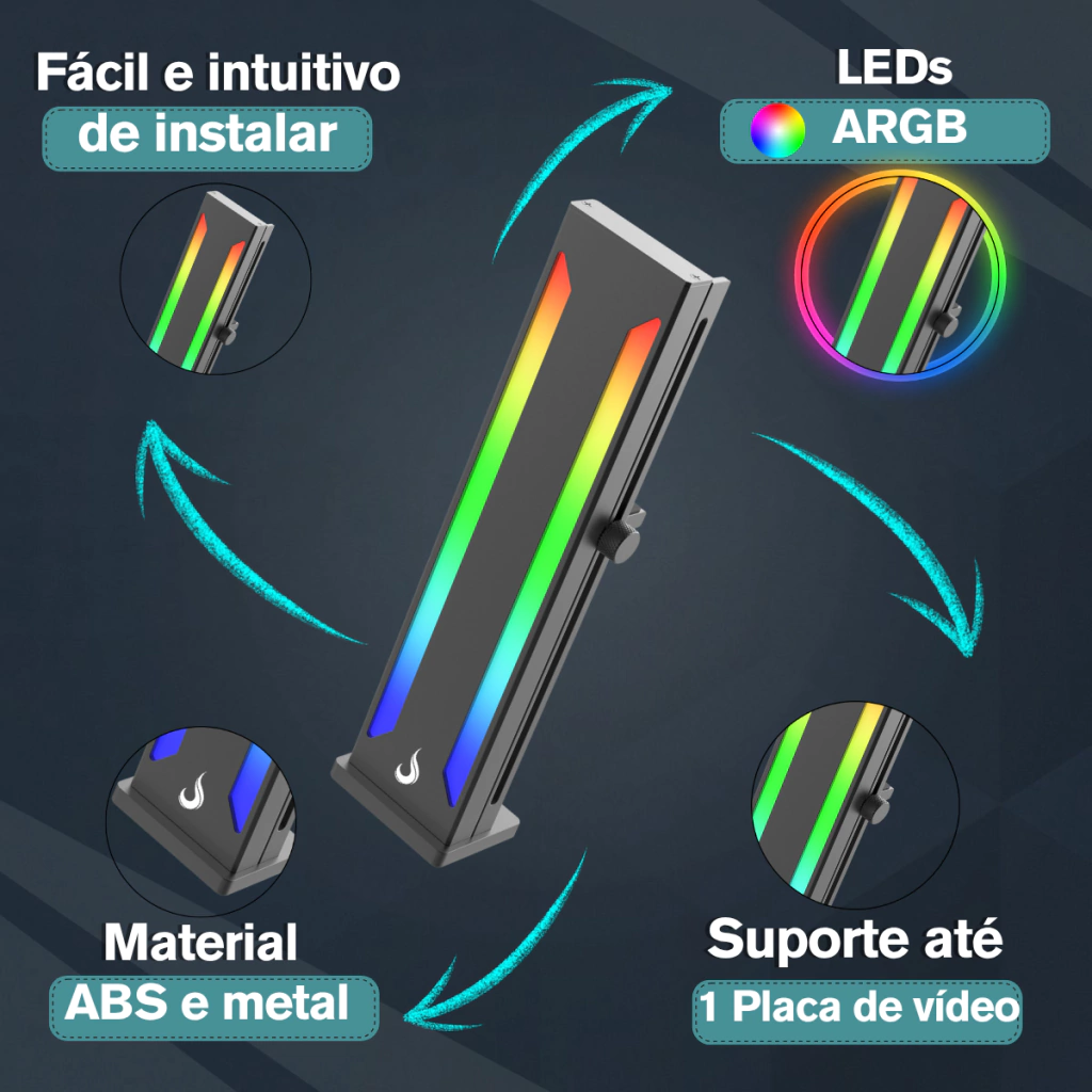 Adicione um toque de estilo e proteção ao seu setup com o Suporte Aura ARGB Black para Placa de Vídeo. Compatível com placas-mãe que possuem conector 5V 3 pinos ARGB, este suporte oferece iluminação personalizável e suporte eficaz para sua placa de vídeo.